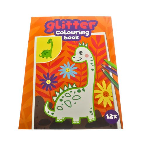 Dit kleurboek met glitters neemt kinderen mee naar een wereld vol dinosaurussen. Met 12 pagina’s vol vriendelijke en speelse dino’s, vulkanen en prehistorische landschappen is dit boek ideaal voor jonge kunstenaars. Het glittereffect maakt de dino’s extra magisch en zorgt voor sprankelende kleurplaten.